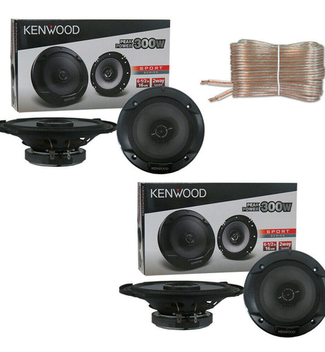 2 Pair Kenwood KFC-1666S 6.5" Car Stereo Speaker with 20' 18 Gauge Speaker Wire