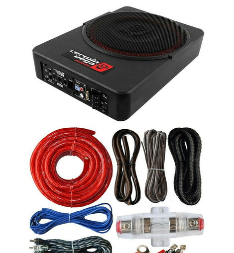 Cerwin Vega VPAS10 Under Seat Subwoofer Enclosure + 4G AMP Kit car stereo amplifier installation kit