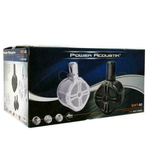 Power Acoustik MWT-80T 8″ Waterproof Marine Wake Tower Speakers (Pair) Titanium Power Acoustik went the extra mile to make these speakers marine-grade. It was built from the ground up to be the finest possible speaker for your off-road vehicles, motorcycles, or personal watercraft. It made splash-and-spray-resistant sealed motors, cones, and sealed terminal covers. Even the grilles have a built-in drainage port to prevent standing water. It’s all engineered to maintain top-shelf performanc...