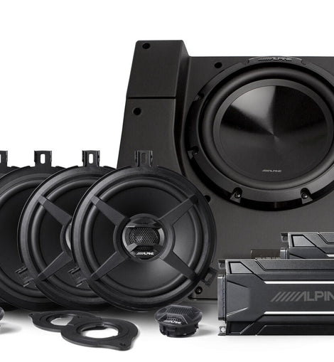 Alpine supplies everything you need to revitalize the sound in your Wrangler. You'll get two 6-1/2" component systems with 1" dome tweeters for the front and soundbar locations in your Jeep. Alpine lets you convert these components to a coaxial design if called for in your JK Unlimited. The included weather-resistant Tough Pack 4-channel amp ups your power for awesome clarity at all volumes — a must for top-down drivers. Alpine also gives you a 10" enclosed under-seat subwoofer and a Tough Pack mono amp for some whoppin' bass.