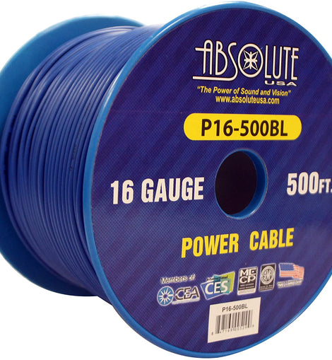Absolute USA P16-500BL 16 Gauge 500-Feet Blue Spool Primary Remote Power Wire Cable