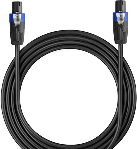 The Speakon speaker cable is made of Premium PVC-85P and Copper Wire, making it soft lightweight but very durable for a very long time. The audio cord is made with Industrial Grade Construction and delivers premium performance without noise, static, or buzzing, you will never be regretted of buying that. The stereo cable features black and blue colored male connectors at each end with spring-loaded lock release latches. Accurate and dependable twist lock latching system "Quick-Lock", being capable of carrying high current. Perfect for high-power loudspeaker applications: stage monitors, house speakers, and subwoofers, etc.