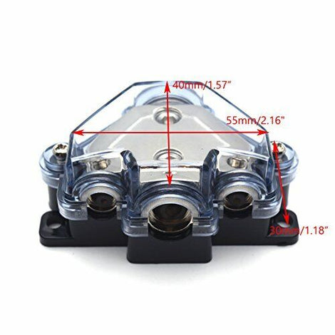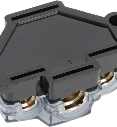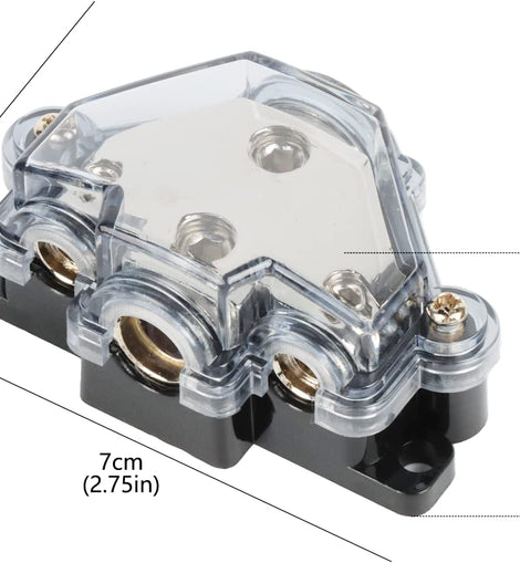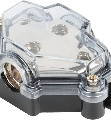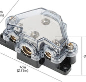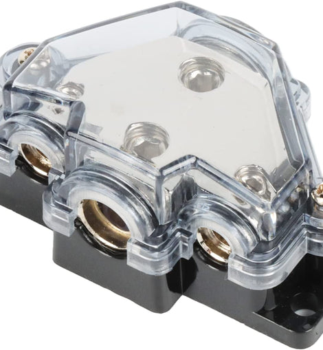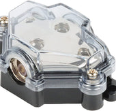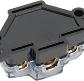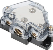 Absolute PD-130C 2-4 Gauge Chrom-Plated 1 in 3 Ways Out Power Splitter Distribution Block with One 2-4 Gauge Input, On 4 Gauge & Two 8 Gauge outputs