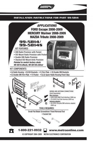 • Metra 99-5814S Single/Double DIN Dash Multi-Kit for Select Ford/Mercury/Mazda