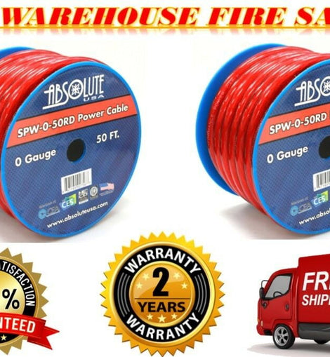 New 1/0 Gauge, 50-foot Absolute Power / Ground Wire Cables provide excellent power and durability for all your installation needs! Flexible enough to maneuver through tight areas and well-insulated from oxygen and other harm. If you want a quality buy at a great price, this is it! This power/ground Wire is a Copper-Clad Aluminum Wire (CCA). This means it comprises an inner aluminum core and outer copper cladding. Absolute proudly provides the needed amplifier wiring and car audio installation accessories to get and keep your audio equipment up and running!