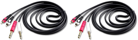 This 6-foot Pro Audio Cable from Mr. DJ Features Dual 1/4" TS Mono Connectors on One End and Dual RCA Male Connectors on The Other. Each Connector is Made Tough to Ensure Signal Stability and Provide Remarkable Strain Relief. The wires are also housed in a durable PVC jacket to endure rugged use.