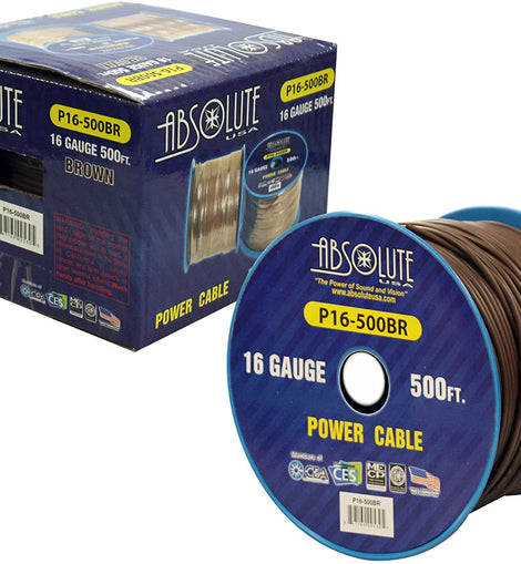 Absolute USA P16-500BR 16 Gauge 500-Feet Brown Spool Primary Remote Power Wire Cable