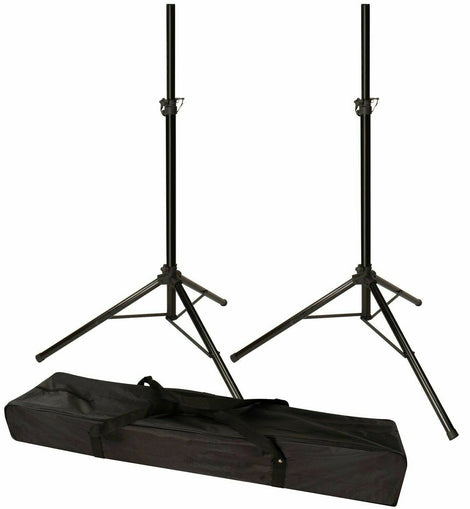 MR DJ SS-650PKG (SS350B x 2) Speaker Stand Universal Black Heavy Duty Folding Tripod PRO PA DJ Home On Stage Speaker Stand Mount Holder with Road Carrying Bag MR DJ Products are constructed of the finest materials and designed and tested to meet the demanding lifestyle of the touring musician, gigging DJ, and working sound engineer. Perfect for your portable PA. This standard audio PRO PA/ DJ speaker stands to adjust from 37.5" to 78.75" in height and accepts 1-3/8" diameter sockets. Their a...
