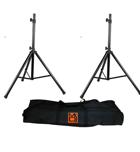 MR DJ SS-650PKG (SS350B x 2) Speaker Stand Universal Black Heavy Duty Folding Tripod PRO PA DJ Home On Stage Speaker Stand Mount Holder with Road Carrying Bag MR DJ Products are constructed of the finest materials and designed and tested to meet the demanding lifestyle of the touring musician, gigging DJ, and working sound engineer. Perfect for your portable PA. This standard audio PRO PA/ DJ speaker stands to adjust from 37.5" to 78.75" in height and accepts 1-3/8" diameter sockets. Their a...
