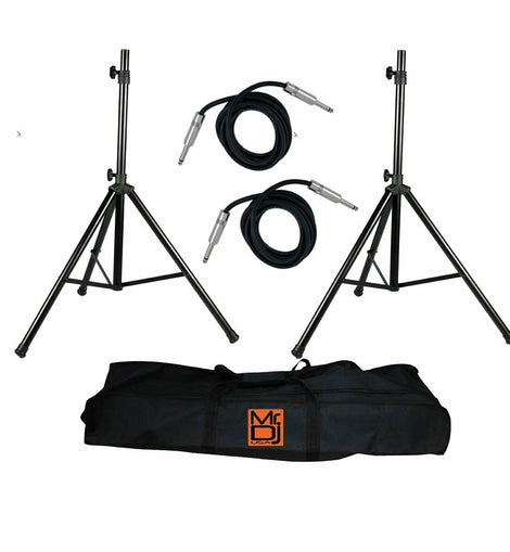 MR DJ SS750PKG Speaker Stand Universal Black Heavy Duty Folding Tripod PRO PA DJ Home On Stage Speaker Stand Mount Holder with Road Tote Carrying Bag and 2 1/4" 25' Cable