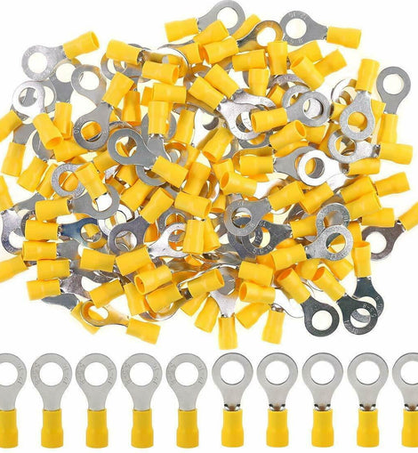 ABSOUTE 100Pcs 12-10AWG Insulated Ring Terminals Electrical Wire Crimp Connectors Yellow