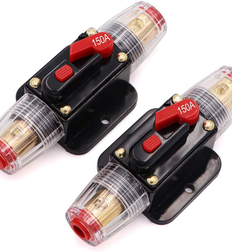2 Absolute ICB150 4/8 AWG 150 Amp In-line Circuit Breaker with Manual ResetThe 150 Amp Circuit Breaker will work as a substitute to your system's 150 amp fuse(s). If your amplifier(s) fuses add up to