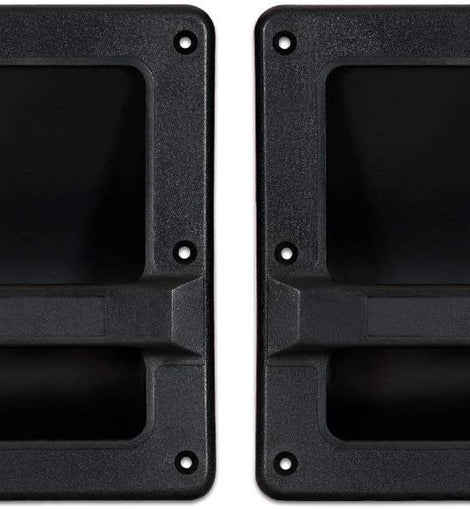 This set of two black heavy-duty ABS pocket speaker handles will be the best you ever had for your project. Each handle is made of sturdy lightweight ABS plastic. Simply install each handle to your speaker box or cabinet with you your own screws. These heavy-duty handles allow portability for your cabinets without sacrificing style or performance. Comfortable grip that goes easy on your hands, sturdy yet lightweight and stylish. Each handles measures 6.5 inches wide and 8.25 inches high with a depth of 2 inches making it super easy to grab and carry your most heavy equipment.