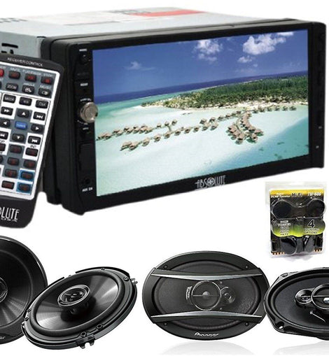 • Absolute DD-3000 Double Din receiver 7" DVD CD MP3 player Double Din head unit car stereo with pioneer TS-G1620F, TS-G6930F speakers & TW600