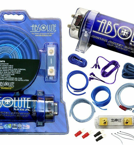 Absolute USA KITCAP0GABL Combined Amp Kit & Capacitor Package, 4.0 Farad Power Capacitor 0 Gauge Car Amplifier Installation Wiring Complete Kit