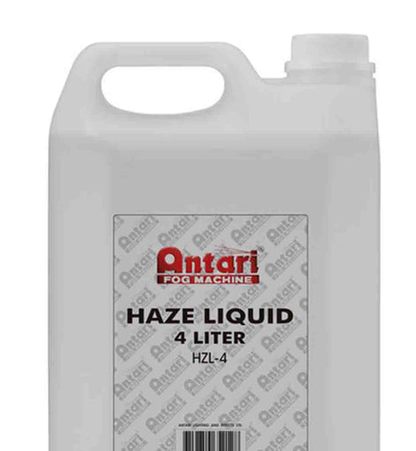 The Antari HZL-4 is an Oil Base Premium Haze Fluid 4L Bottle Specially composed haze fluid, HZL is a non-toxic solution that produces a pure, translucent haze with an extremely long hanging time and low moisture content. Colorless, odorless, and non-flammable, HZL leaves no residue or contamination and complies with the strictest health and safety regulations.