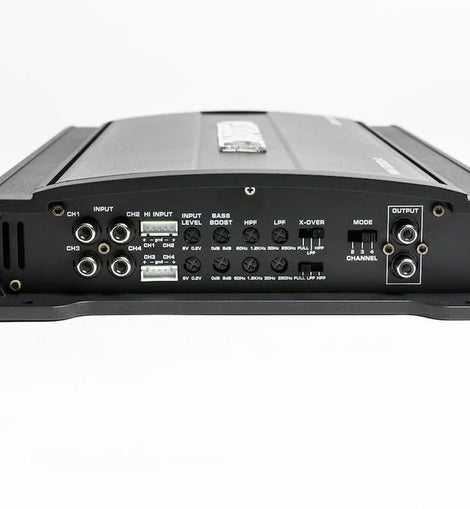 Autotek Mean Machine MM1020.4 Class-A/B Full Range 4-Ohm Stable 4-Channel Amplifier RMS Power Rating: 4 ohms: 125 watts x 4 chan. 2 ohms: 250 watts x 4 chan. 1 ohm: ------------N/A------------ Bridged, 4 ohms: 500 watts x 2 chan. Total power output: 1000 watts CEA-2006 Compliant Amplifier Pulse Width Modulated MOSFET power supply Wired remote bass level control included LED power (green) and protect (red) indicators Soft start turn-on 4/3/2 or Mono channel operation Speaker-level (high-level) inputs Preamp RCA outputs to daisy chain multiple amps 3-way protection circuitry (thermal, overload, and speaker short protection) Dual speaker terminals simplify the hookup of multiple speakers Heavy duty aluminum alloy heat-sink Input sensitivity: Low level: 125mV-5V High level: 250mV-10V Frequency Response: 30 - 12000 Hz Total Harmonic Distortion (THD): <0.05% Signal to Noise Ratio: >90 dB Variable high-pass filter: 60 - 1200 Hz, 12 dB/octave Variable low-pass filter: 30 - 250 Hz, 12 dB/octave Variable Bass Boost: 0, +6, +12 dB bass boost at 50 Hz Fuse Rating: 15 A x 2 4 gauge power and ground wiring is recommended for installation. Contact us for information regarding a discount on select amplifier kits from our website when purchased together with this amplifier. Click Here for our contact information. Authorized Internet Dealer