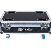 The Colorkey CKU-9028 is a Charging Road Case for Mobilepar Mini Hex 4. ColorKey MobilePar Mini HEX 4 8pc Charging Road Case allows you to safely charge and haul up to eight (8) MobilePar Mini Hex 4 lights, chargers, and accessories. This rugged lighting road case features a hinged lid, recessed latches, and handles for convenient setup and transport. Each light is housed in its own protected compartment with direct access to the center power strip for charging all 8 lights simultaneously. A PowerCon connector on the outside of the case is available for charging with the lid closed (power cable included). Includes 4 heavy-duty casters, so no backbreaking lifting is necessary.