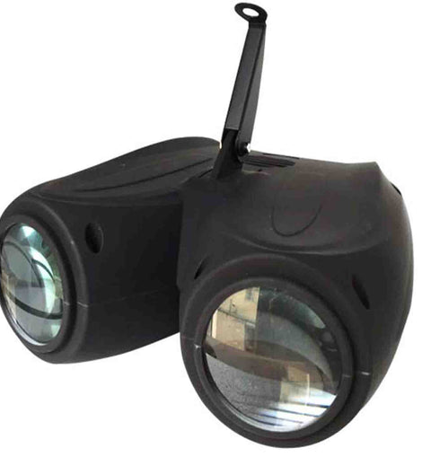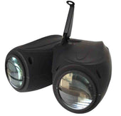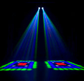 The ColorKey Twin Airship is an effect lighting fixture featuring dual jet-engine-shaped lenses. It produces multicolored animated patterns, shapes, and letters. The animation speed is adjustable manually or can be controlled by sound. It is ideal for mobile entertainers, birthday parties and events.