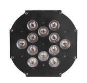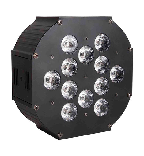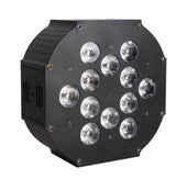 The WaferPar Hex 12 MKII is a versatile LED Par fixture with 12 x 15-Watt, 6-IN-1 HEX LEDs. The WaferPar Hex 12 MKII features a 35-degree beam angle, users may produce wide washes with smooth color mixing from 63 built-in color macros utilizing red, green, blue, amber, white and UV LEDs.