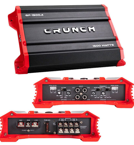 Crunch Ground Pounder GP-1500.4 1500W Max 4 Channel Class AB 1500 Watts Car Amplifier with Absolute KIT8 8 Gauge Amp Kit