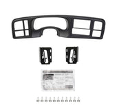 This replacement dashboard panel is engineered to help you install an aftermarket 4" tall (Double-DIN) radio so that you can upgrade the stereo much more easily. Since the original dashboard on these older models cannot fit a larger radio, this replacement panel allows you to upgrade to a bigger, modern radio without complex or labor-intensive custom fabrication. It is painted gray to match the original look and feel of the vehicle's dashboard. Installing an aftermarket radio can upgrade the sound quality and provide additional features the original factory radio couldn't offer but requires this dash panel to make it fit.