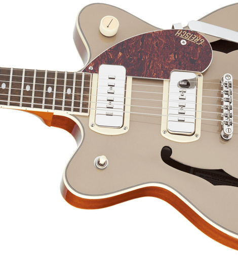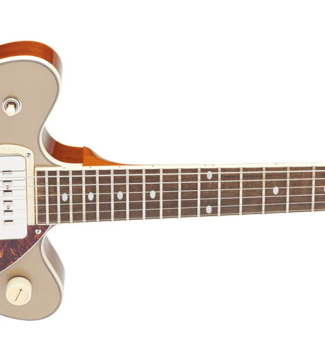 • Gretsch G2655T-P90 Streamliner™ Center Block Jr. Double-Cut P90 with Bigsby®, Laurel Fingerboard, Two-Tone Sahara Metallic and Vintage Mahogany Stain