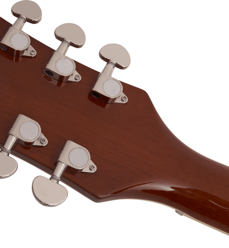 The G2655T-P90’s sound is the perfect blend of brash and brawn with a chambered spruce center block driven to the limit by all-new Gretsch FideliSonic™ 90 pickups. These single-coil 90 pickups retain the full warm tone of a traditional P90 with a distinct top-end that is articulate and well-defined. A lightweight spruce center block runs the length of the mahogany body, reinforcing the arched top while eliminating undesired feedback for volume-friendly performance on modern stages.