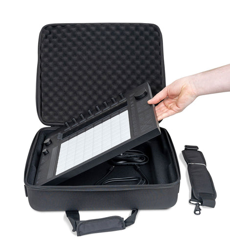 The Headliner Pro-Fit Case for Push 3 is the perfect companion for your Ableton Push 3 (or Push 2) on the road. It features custom-molded interior with ample space for power supply and cables. Made from a lightweight molded EVA exterior shell and snug-fit foam, it features a rugged water-resistant polyester exterior as an added layer of protection and safekeeping. The Headliner Pro-Fit Case for Push 3 also comes with removable egg-crate foam under the lid that will ensure an extra layer of safety for all knobs, buttons. A comfortable carrying handle and included shoulder strap let you take your gear on-the-go with protection and style.