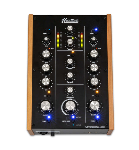 The Headliner R2 features genuine ALPS potentiometers, and a sturdy metal enclosure with stained wood side panels for a classic look that will complement any DJ setup. The modular internal construction, coupled with the external power supply connected via locking Mini XLR ensure superior audio performance.