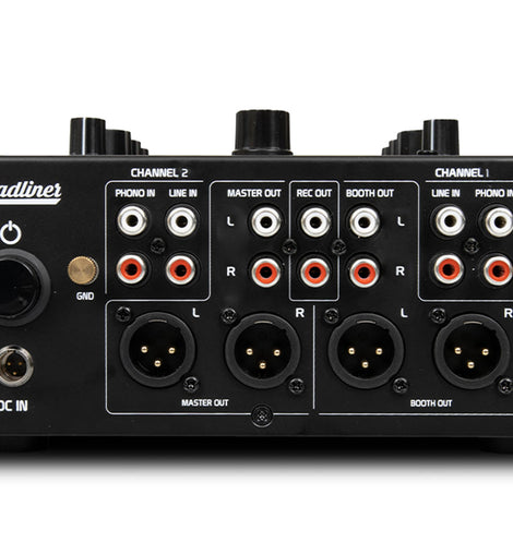 Featuring two stereo channels with selectable Line and Phono RCA inputs, each channel on the Headliner R2 comes equipped with gain control with a peak LED, a 3-band isolator EQ, a headphone cue selector, a large channel volume control knob, and a filter activation switch.