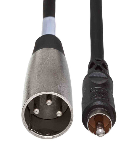 The Hosa XRM-105 is an RCA Male to 3-Pin XLR Male Unbalanced Interconnect Cable 5 Feet. This cable is designed to connect gear with phono outputs to gear with XLR inputs. For best results, match the high output impedance to the low input impedance.