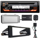 JVC KD-T92MBS Bluetooth CD AUX AM/FM Receiver, Install Kit, SiriusXM Tuner, Harley Davidson Weathershield Cover