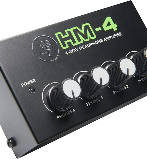 Straightforward and incredibly easy to use, the ultra-compact HM-4 4-Way Headphone Amplifier by Mackie is truly the no-hassle headphone management solution! The HM-4 features a single 1/4” stereo input and four 1/4" headphone outputs, each with its own individual level control. That makes the HM-4 ideal for studio use, band rehearsals, and even personal listening when up to four people want to listen together. Mackie products are Built-Like-A-Tank™, and this incredibly budget-friendly performance headphone amplifier is no exception!