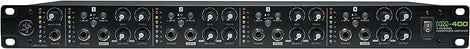 The Mackie HM-400 features a primary stereo input with level control and stereo outputs. Each of the HM-400’s four channels includes three headphone outputs, an AUX input with balance control to mix the Main and AUX signals, a mute and stereo/2-ch mode switch, a 7-segment LED meter, and individual EQ. That gives you a total of 12 total headphone outputs!