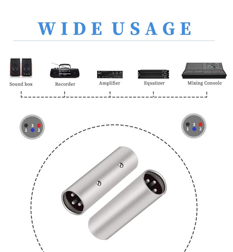 • MR DJ AXLRMM 3-Pin XLR Male to 3-Pin XLR Male Audio Microphone Cable Extension Adapter Connector
