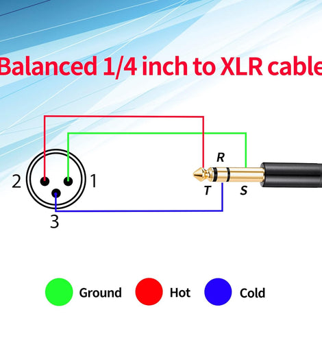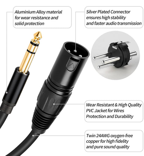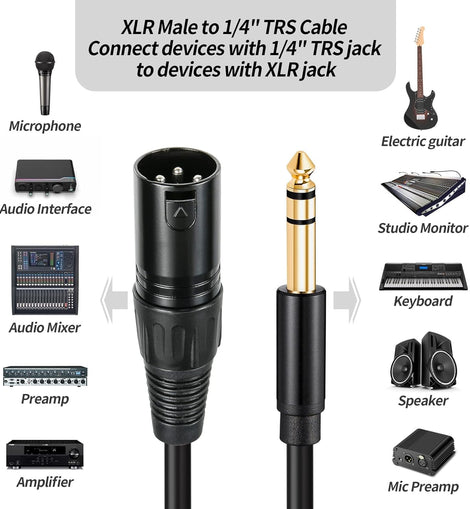 The Industry. No Need to Worry About Interrupted Sound, Static, or Loss of Quality During an Important Gig Because This Stereo Cable is Made with Highly Durable Construction and Delivers Premium Performance Without Noise, Static, or Buzzing. These Cables Feature A 3-conductor XLR Male Connector on One End and a 1/4" TRS Stereo Male Plug Connector on the Other End. This xlr to 1/4 quarter inch cable is used to output a balanced/unbalanced audio signal from a 1/4" port to a xlr input device. Output devices include a mixer, DJ controller, podcast, keyboard, electronic drum, etc. These devices usually have 1/4" balanced/unbalanced output ports, traditionally marked with central out, control room, FX send, Master out, Sub out, Stereo out, Stereo return, etc. Input devices are usually powered speakers, studio monitors, interfaces, AMPs, etc.