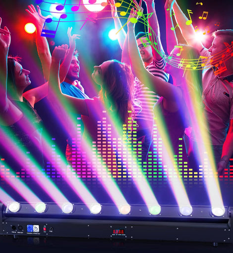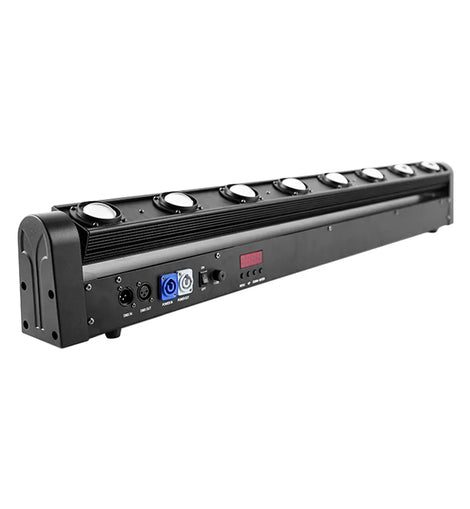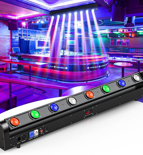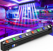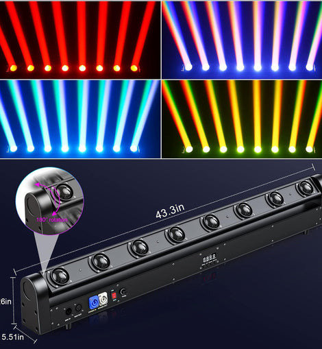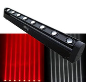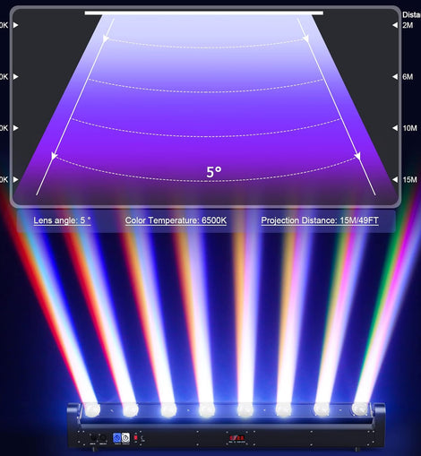 The MR DJ ELMH800 light has eight powerful LED light beads with RGBW 4 in 1 red, green, blue, and white. The colors can be freely changed and combined to create gorgeous visual effects. The beam angle is 8 degrees. These lights are extremely bright and throw across long distances without any dullness. They act as a beam; Strobe: 10 Flashes per second (any color) with 180 ° Pan rotating; speed can be controlled.