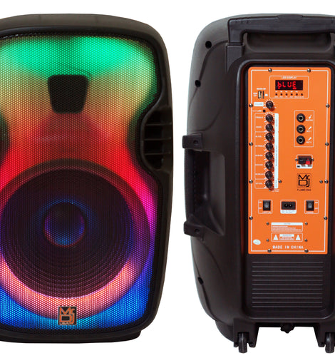 • MR DJ FLAME3500LED Pro Portable 15” 2-Way Full-Range Powered/Active DJ PA Multipurpose Live Sound Bluetooth Loudspeaker with Stand