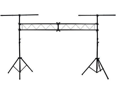This stage lighting truss system can enhance performances in numerous ways. It features retractable legs and has a 120-inch spread. This allows it to accommodate several speakers and lights. It is equipped with a pair of durable and resilient T-bar tripod stands as well. With this mobile trussing light stand, you can hang a maximum of eight speakers. Steel tubing and rubber rest pads ensure the system does not go anywhere you do not want it to.