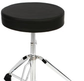 Round Cushioned Drum Throne with Double-braced Legs This sturdy padded drummer's throne seat has a comfortable padded seat measuring 12 inches in diameter and double-braced legs that can easily support any drummer weighing up to 215 pounds. The padded drum seat stool features a thick 2 3/4" padded seat. Find the desired height from 18 to 23 inches with this double-braced drum throne stool. Once you find your favorite seat height, relax, knowing the slip-proof nut and bolt will stay in place as you play on your padded drum throne stool.