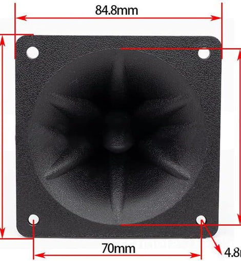 The MR DJ TWS400 is a 3.1" x 3.1" Component Square Tweeter with a piezo horn element. It is a Replacement for a DJ Speaker, Loudspeaker, Buzzer, and Treble. These tweeters are designed for Car Audio, Home audio, and speaker Sound Boxes.