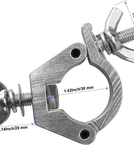 These Heavy-Duty pro stage lighting clamps, with their Aluminum anodized treatment, are unique-looking, durable, and anti-dirty. The truss mounts are quick and easy to install, and the design allows the bolt to be held in place when tightened.