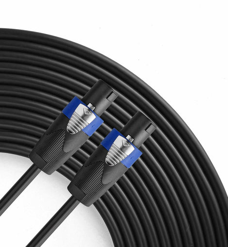 Professional Speaker Cable Compatible With Speakon Connector(Male) to Compatible With Speakon Connector(Male)Spring Loaded Locking Ends. Speakon, an alternative to TRS, are fully shielded connectors with a locking mechanism for extra connection security and are primarily used in audio connections, such as connections between speakers and amplifiers.