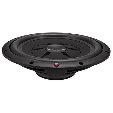Details: This 4-Pack of Rockford Fosgate R2SD4 12 12 Inch 500 Watt Shallow Mount Subwoofers is built to give you the bass you desire when space is limited. An elevated motor structure that reduces speaker depth allows this subwoofer to fit into even the tightest of spaces. It also features an anodized aluminum voice coil former that provides superior heat dissipation, and conforms to CEA 2031 industry standards. Meanwhile, the stitched tinsel leads improve reliability and performance by reducing fatigue and possible shorting. The R2SD4 12 also features a mica injected polypropylene cone, 12 gauge compression terminals, an integrated PVC trim ring, a liner spider with embedded 16 gauge tinsel leads, and a StampCast basket with integrated spider venting.