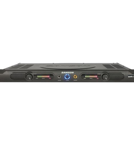 The Samson Servo 120a Power Amplifier is a stereo power amplifier that can be used for all types of recording applications, live performances or permanent installs. The amplifier provides "reference-class" audio performance and reliability in a compact, single rack-space package.
