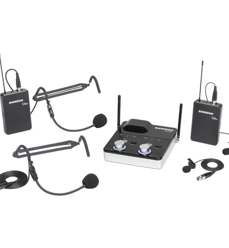 - Professional, high-performance dual channel presentation wireless system with lavalier and headset microphones