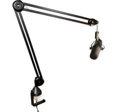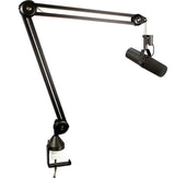 The BCM-200 Broadcast Mic stand is a scissor style design that offers more reach than the competition - offering a max height of 39” when fully extended. The flexible, scissor style tension mechanism allows the BCM-200 to continuously reposition, offering fluid motion in dynamic environments. The extended drop features a 3.2” length - this gives side connecting mics like the SM7B more positioning options, and adds utility for other models. The non-destructive deluxe mounting system includes a round base that allows easy rotation, and a flexible clamp sys tem which also can be used as a utility hanger.